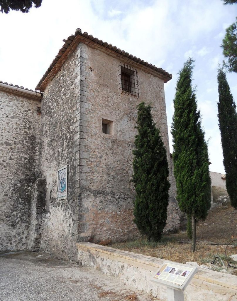 Junto a la ermita se conserva la conocida Torre del Conjurador, construida en 1678 (S. XVII) sobre la base medieval del propio castillo. Este elemento forma parte del conjunto monumental del Puig d’Almizra y está estrechamente vinculado a las tradiciones populares del municipio.